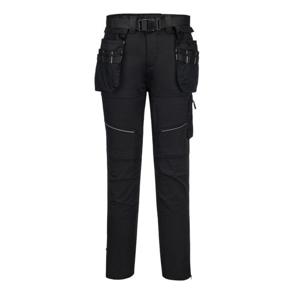 Značilnosti: Izredno moderne in s po telesu prilegajočo obliko, so hlače Jogger KX3 kot nalašč za tiste, ki želijo med delom tudi dobro izgledati. Športno prileganje ob telesu z odsevnim trakom na zadnji strani nog. Ključne značilnosti vključujejo snemljive viseče žepe za večje udobje, žepe za ščitnike kolen, žep za dva ravnila, viseči žep in všit pas.