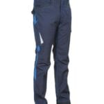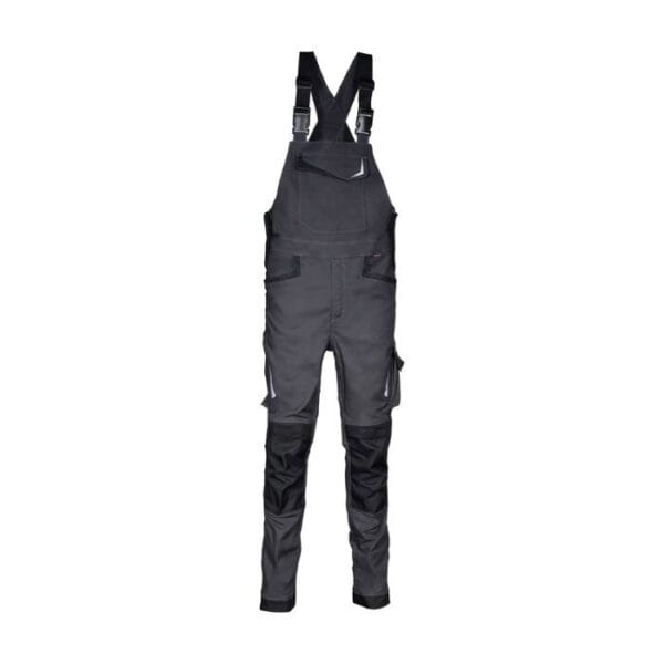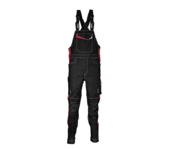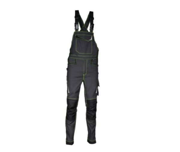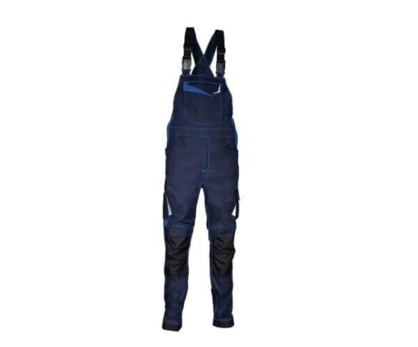 Značilnosti: Delovne hlače z naramnicami so zasnovane za udobje in funkcionalnost pri delu. Izdelane so iz mešanice bombaža, poliestra in elastana, kar zagotavlja trpežnost in elastičnost. Hlače imajo nastavljive naramnice s hitrim zapenjanjem, odsevne vložke, nastavljivo zanko za kladivo, ergonomsko oblikovana kolena in hlačnice, nastavljive žepe za kolenčnike iz najlona. Hlače ne vsebujejo kovinskih delov, zato niso zaznavne z detektorji kovin. Primerne so za uporabo v gradbeništvu in industriji.