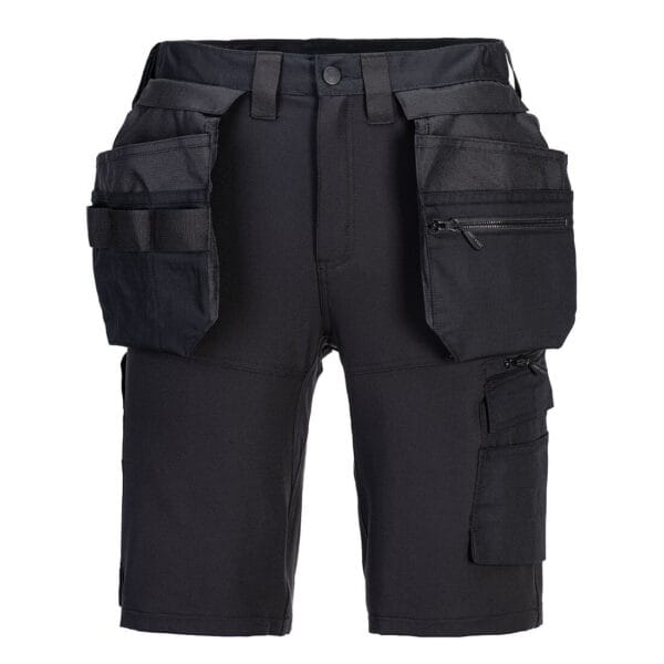 Značilnosti: Kratke hlače z visečimi žepi DX4 so pametno oblikovane in uporabljajo ciljno razporeditev dinamičnih štirismernih raztegljivih tkanin za maksimalen razpon gibanja pri delu. Te kratke hlače imajo povišan pas na hrbtu z elastiko ob straneh, ki zagotavlja zaščito v vseh delovnih položajih. Trojni šivi vseskozi za največjo vzdržljivost.