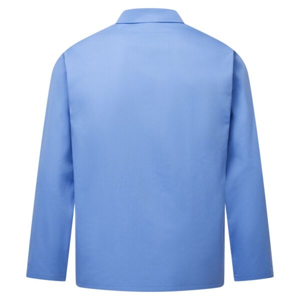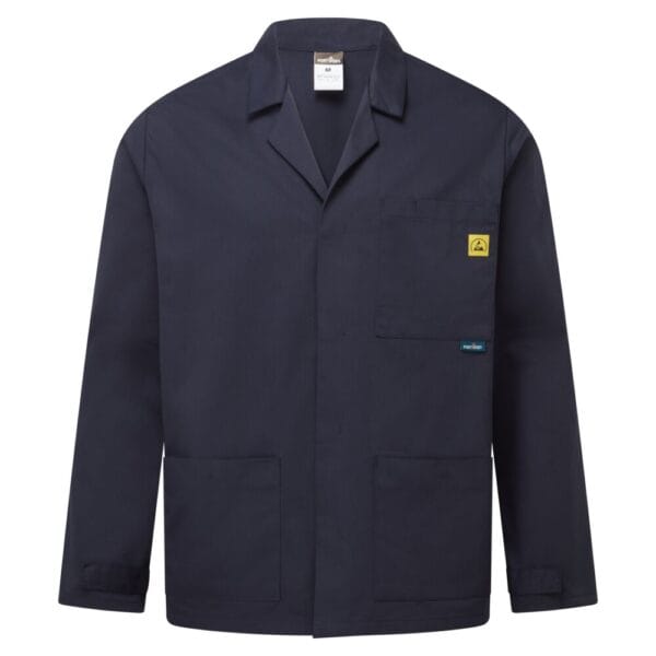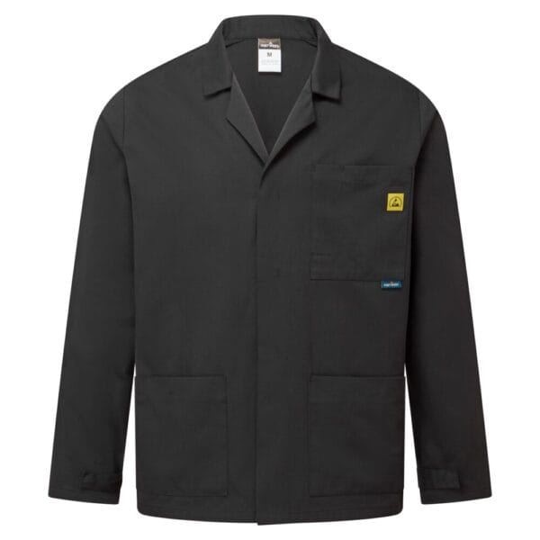 Značilnosti: Ta udobna antistatična jakna je idealna za okolja v katerih je potrebna elektrostatična odpornost. Zasnovana z mislijo na varnost in udobje. Funkcije vključujejo skrite nete spredaj, dva našita spodnja žepa, en prsni žep in nastavljive manšete.