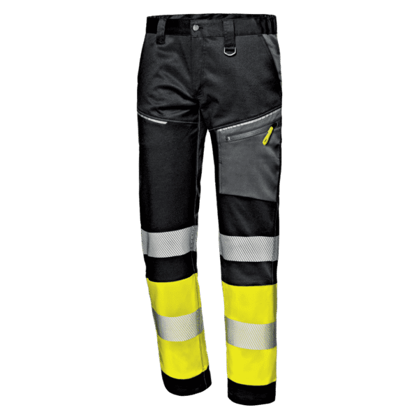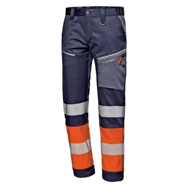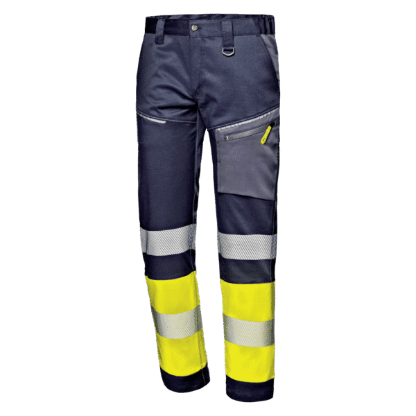 Značilnosti: Predstavljamo delovne hlače Mistral, zasnovane za tiste, ki v svojih delovnih oblačilih potrebujejo visoko vidljivost in udobje. Te delovne hlače so izdelane iz zračne mešanice bombaža in poliestra, ki zagotavlja vzdržljivost in udobje skozi ves dan. S poudarkom na varnosti in funkcionalnosti imajo več žepov in ojačane šive, zaradi česar so idealne za različna delovna okolja. Delovne hlače Mistral so certificirane v skladu s standardi EN ISO 20471 razreda 2, kar zagotavlja, da ostanete vidni in varni. Opremljene z osrednjim odpiranjem z gumbom in zadrgo, povečanimi zankami za pas, od katerih ima ena na levi strani D-obroč. Z dvema stranskima žepoma in obešenim žepom na levi hlačnici v sivi barvi, ki se zapira z zadrgo.